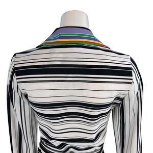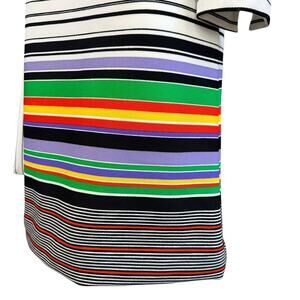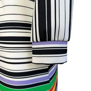 This is the most amazing dress! Totally mod. Love the stripes and the large colorful color and colorful dress bottom.