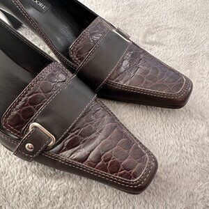 Vintage Jennifer Moore Brown Croc Embossed Square Toe Buckle Kitten Heels 7