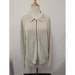 Vintage Jennifer Moore Ivory Open Knit Chunky Zip Up Sweater sz 8 Neutral Basic