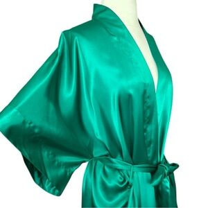 Vintage Jennifer Moore Satin Emerald Green Kimono Topper Robe, One Size