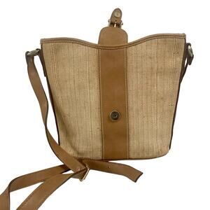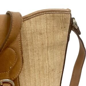Vintage woven bag by Jennifer Moore in fairly good preowned condition. Does show use. Mostly inner lining staining and wear on hardware gold plating. There are some spots on outer shell as pictured. Please see all images for detailed condition.