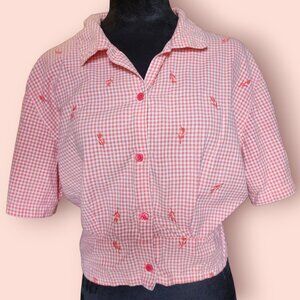 Vintage Jennifer Moore embroidered checkered gingham cropped button down shirt