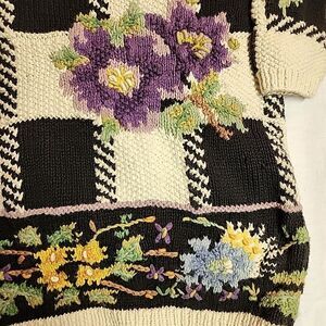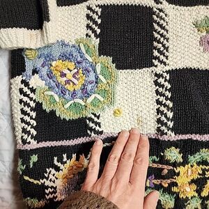 preowned good condition Vintage Jennifer reed womens check sweater size M embroidery eclectic grandma