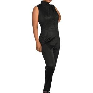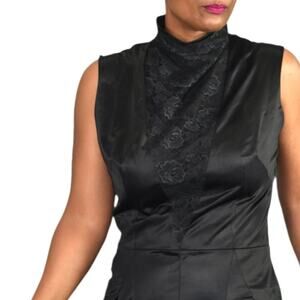 Vintage 60s Jer Marai jumpsuit FEATURES a bodycon close fitting silhouette and a v shaped lace panel down the center front. High mock neck. Button closure in back. Sleeveless. Tapered pant legs. Great as indoor loungewear or dressed up with a stiletto sandal.