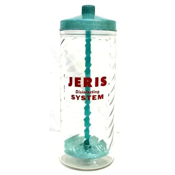 Vintage Jeris Disinfecting System Glass Jar Barbershop Hazel Atlas Disinfectant