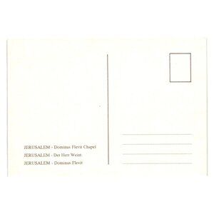 This postcard depicts the Dominus Flevit Chapel in Jerusalem, highlighted by cherry blossoms and a scenic city view. A collectible or decorative item.