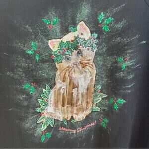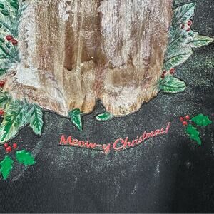 Vintage Jerzees 80's Hand Painted Meow-y Christmas Cat Graphic Sweatshirt XL