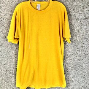 Vintage Jerzees Basic T-Shirt Yellow Mens XL 50/50 Heavyweight Made in USA Blank