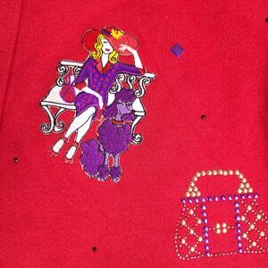 Vintage Jerzees Cardigan Sweater Womens One Size Red Embroidered Lady Poodle‎
