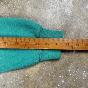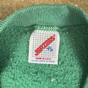 This vintage Jerzees sweatshirt captures cozy cottagecore charm with its whimsical duck graphic across the chest. Five white ducks dressed in red ribbon bows march together, printed in raised puff ink for that nostalgic textured feel. The soft green cotton/poly blend fabric, raglan sleeves, and ribbed cuffs/hem give it that true 80s/90s sweatshirt fit.