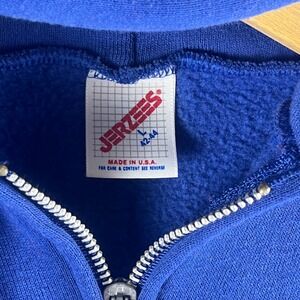 Keywords: Jerzees, Hoodie, Sweatshirt, Full Zip, Blue, Mens, Large, Vintage, USA Made, Hooded, Activewear, Casual, Comfortable
