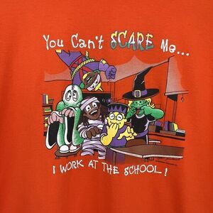 Vintage Jerzees Halloween T Shirt You Cannot Scare Me I Work At The School 2x