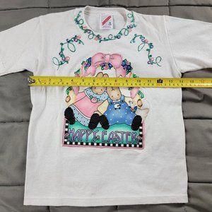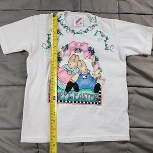 Vintage Jerzees Kids Small White T Shirt Happy Easter Bunny Short Sleeve Cute