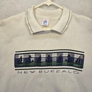 Vintage Jerzees New Buffalo Sailboat Graphic Sweatshirt Womens L Cream USA Made