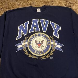 Vintage Jerzees United States Navy Crewneck Sweatshirt Navy Blue Large