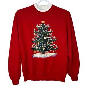 Vintage Jerzees Women's XL Christmas Tree Holiday Sweatshirt Red USA Made