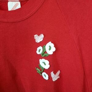 Vintage Jerzees red short sleeve floral applique crewneck sweatshirt