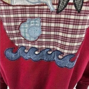 Step back into the 90s with this charming vintage Jerzees sweatshirt featuring a stitched Noah’s Ark design with whimsical animals. A true throwback piece, made in the USA, and perfect for cozy vintage style lovers or collectors of unique applique sweaters.