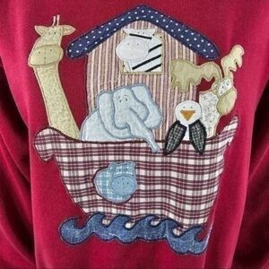Vintage Jerzees USA Made Noah's Ark Sweatshirt Adult XL Red Crewneck Animals App