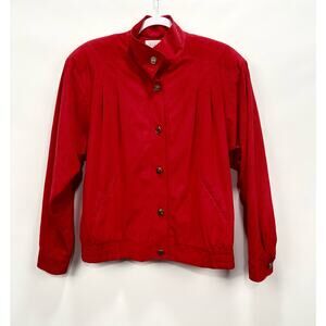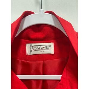 Vintage Jessica Grey Red Faux Suede Dressy Elastic Waist Jacket w/Gold Buttons