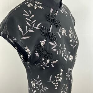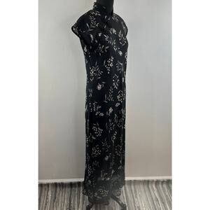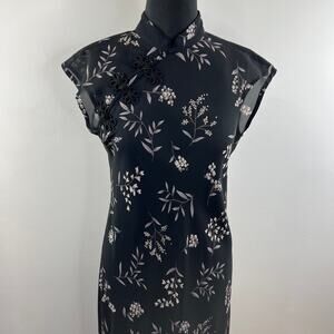 Vintage Jessica Howard Black White Asian High Neck Frog Toggle Maxi Dress S M