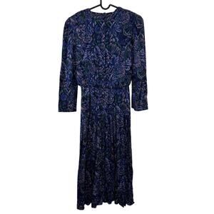 Vintage Jessica Howard Dark Floral Purple Print Midi Dress Sz 10 Vamp Whimsigoth