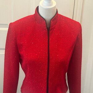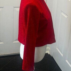 Vintage Jessica Howard Red Glitter Zip Jacket, Stand Collar, Sz 10