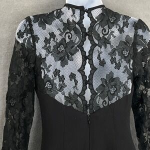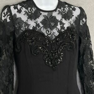 Keywords: Jessica McClintock dress, black lace dress, long sleeve dress, vintage dress, formal dress, party dress, cocktail dress, retro dress, 90s dress, size 6 dress, little black dress, LBD, made in USA, wedding guest dress, special occasion dress, prom, whimsigoth, grunge, vamp, dark fairy, romantic, retro