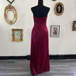 Vintage Jessica McClintock Deep Red Floral Embroidered Jacquard Strapless Gown