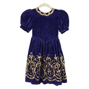 Vintage Jessica McClintock Girls 6 Dress Velvet Sequins Purple Gold Formal Party