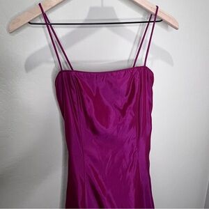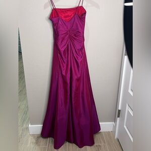 Vintage Jessica McClintock for Gunne Sax Formal Dress. Size 3. Lined. Color isn’t ombré like in first couple pics. Solid color but if light shines on it it changes. The color is call dark hot pink kinda a little purplish. Black netting underneath. In great shape.
