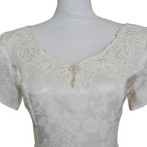 Vintage Jessica McClintock Gunne Sax 90s Y2K Cream Jacquard Fit Flare Dress 3 4