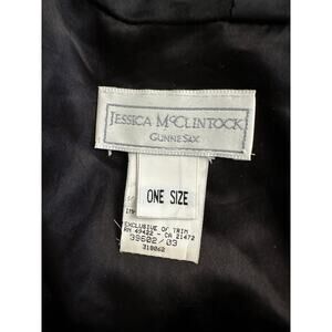 Authentic vintage Jessica McClintock Gunne Sax hooded cloak in plush black velvet. Full length, lined with acetate/nylon, and features a decorative swirl button at the neckline. One size fits most. Made in USA. Perfect statement piece for gothic fashion, renaissance faire, theater, cosplay, Halloween, or collectors of Gunne Sax designs.