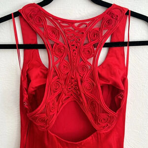 Vintage Jessica McClintock Gunne Sax Red Rosette Mesh Dress 7/8