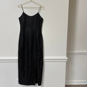 sexy bodcon maxi dress with a high slit. Has a diamond harlequin pattern & crystal embellished straps (all still in tact!)