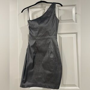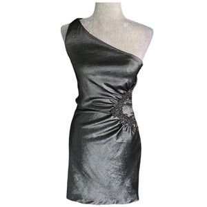 Vintage Jessica McClintock One Shoulder Gunmetal Embroidered Dress 4