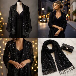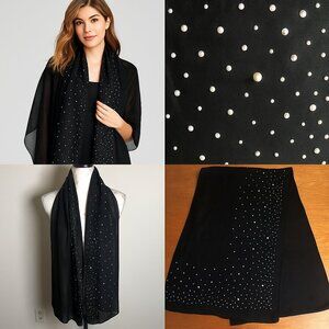 Vintage Jessica McClintock Pearl & Rhinestone Evening Shawl Wrap – Black Holiday