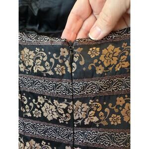 Vintage Jessica McClintock Strapless Dress 4 Black Gold Floral Brocade midi