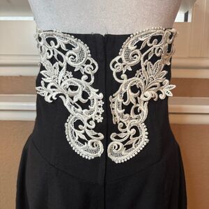 Vintage Jessica McClintock Strapless Sweetheart Dress Black Baroque Cocktail