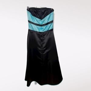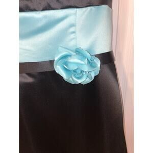 Vintage Jessica McClintock for Gunne Sax Sz 5-6 Strapless Tea Length gown. Beautiful flower embellishment! Black and turquoise