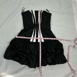 Vintage Jessica McClintock for Gunne Sax size 5 Black & White Satin Strapless Bubble Mini Dress in very good preowned condition.