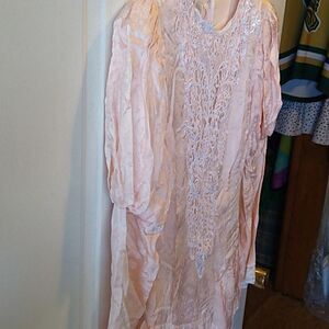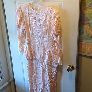 Vintage Jessica McClintock Pink Lightweight Lace and Satin Maxi Dress