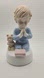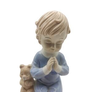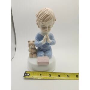 Vintage Jesus Loves Me Music Box Child Praying with Teddy Bear Ceramic Figurine