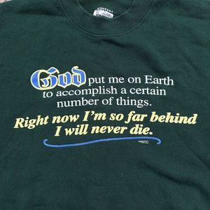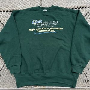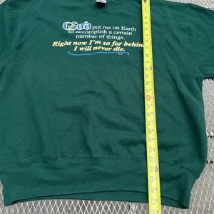 Vintage Jesus Sweatshirt Mens XL Green 1990s God Put Me On Earth Funny Sweater