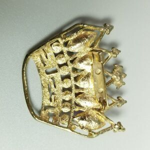 Vintage Jesus Rainbow Rhinestone Crown Brooch, Gold Tone Setting, Estate