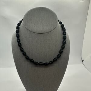 Vintage Jet Black Choker Necklace Beautiful Plastic Beads Gothic Retro Minimal