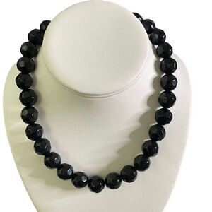 Vintage Jet Black Faceted Glass Beaded Choker Necklace 16” Single Strand