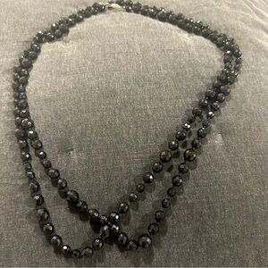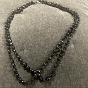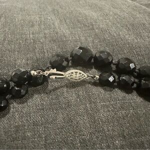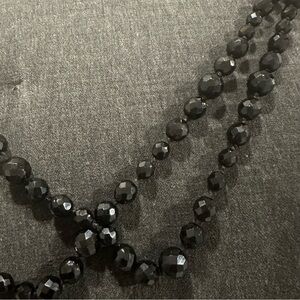 Vintage Jet Black Glass Multi Strand Bead Necklace