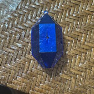 Vintage Jewel Bright Blue Faceted Plastic Ornaments With Festive Set Of 2