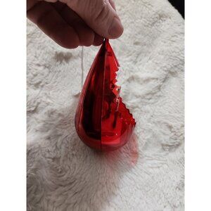 This vintage Jewelbrite Christmas ornament is a unique addition to any collection. The teardrop shape and 3-D diorama design featuring Wiseman and Camel make it a standout piece. The red color adds a pop of color and the plastic material ensures durability.